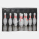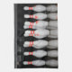En handduk med ett foto av bowling stift.