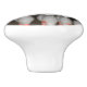 En keramisk knopp med ett foto av bowling stift.