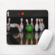 En musknapp med ett foto av en bowlingboll som kraschar in i bowling stift.