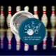 Visa upp din obevekliga energi med den här roliga och sportiga knappen! Med en bowlingklot i hög fart som slår ner käglor och orden *"Jag slås omkull men jag kommer upp igen"* firar den här designen din förmåga att studsa tillbaka – både på och utanför banorna.