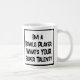 Lustigt slogan på en mugg som säger: "Jag är en Bowls Player. Vad är din toppen?" Mugg för en Bowls Player. Svart och vit fet text.