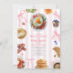 Brunchtemat "bows and brunch" möhippa med vattenfärg Inspired Illustration of frukosten and brunch mat såsom blåbärsmumffin, rostat, ägg, bacon, kaffe, avokado, frukt, bagelpannkakor och mycket annat med rosa bows.