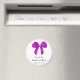 En grafik med en söt lila med en romb i mitten sitter ovanpå denna elegant magnet. Skriptet är anpassade för namn, data och annan bröllop-information som du väljer att lägga på det.