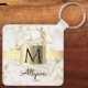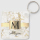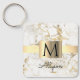 Box White & Guld Marble Guld, Black Namn Monogram Nyckelring