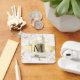 Anpassa ditt namn i svart skript och svart monogram på Guld Box över White och Guld Marble.