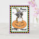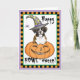 Överför Halloween hälsningar med detta kort av en gullig boxarevalphäxa i en le jack o lantern. Den underbara för barn åldras allra vem kärlekboxare och Halloween. Ha ett lyckligt Tjut-oween!