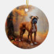 Boxare i höstlöv faller inspirerar julgransprydnad keramik