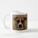 En avbilda av en boxareblandras med ett roligt citationstecken från nyfiken