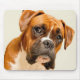 Boxarevalp på elfenbenkrämbackdrop.en musmatta
