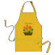 Ett guld- gult förkläde med en blommigt fönster-boxas design från en handpainted papper collage av Judy Adamson. Ovanför de ljust färgade blommorna är texten, "flower power" som du kan ändra eller ta bort fullständigt. Matcha tillgängliga hälsningkort också.
