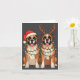 Boxer Dog Christmas Santa Hat Reindeer Lights Paja Kort