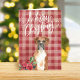 Ett sött Boxer-hund-julkort. Utformningen har en vattenfärgsbild med Boxer och vinterblommor med grönt holly på en rödfärgad bakgrund.