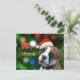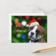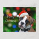 Fawn och white boxer-hund har en för liten jultomtehatt och ser söt ut med ljus i bakgrunden hundälskare julvykort helgdag