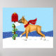 Den här Fawn Boxer stullar i snö för att ta hans heldagshälsningar till brevlådan med sin röda trikå. Julkonstverk från Danes-R-Us kommer att ge ett leende till alla hund älskare ansikte denna säsong.