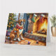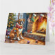 Boxer Sitting by Fireplace with Christmas Lights Kort