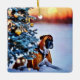 Den här festliga julprydnaden har en snygg boxare hund under ett Julgran.
