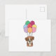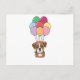 Boxerhund flyger med färgglada ballonger vykort