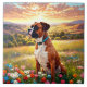 Boxerhund i vacker blomsteräng vid solnedgång. Pussel, pussel i burkar, planerare, anteckningsböcker med denna design i mina butiker. Lägg till text för att anpassa.. Massor av husdjur och landskapsdesign i mina butiker. Lägg till denna design på andra produkter. Lägg till text.