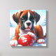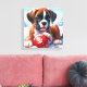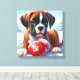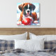 Boxervalp i Snö med Röda Leksak Boll Canvastryck