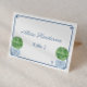 Den här designen säljs som ett 3,5 x 5 tum platt kort som du måste vika (eller räkna och vika) i halva dig själv för att skapa individuella platskort med en vikt på 3,5 x 2,5 tum. Den här klassiska designen har en boxwood-topiär boll i en blå och vit Ginger-Burk-planterare. Formgivningen har också en grekisk Nyckel gräns på framsidan och en grekisk Nyckel mönster på baksidan. Du kan ändra kontrasten färg (för närvarande en mörk blått) genom att ange verktyg ("klicka för att anpassa ytterligare" under textrutorna) och ändra färgerna i bakgrunden. Här visas som platskort för ett bröllop, men skulle fungera lika bra som matkort för tält, för ett smart evenemang vid t.ex. en golfbana eller ett land hus.