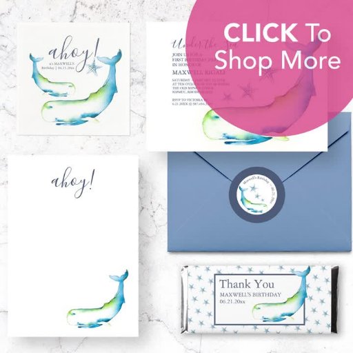 Planerar du en första födelsedag party för din lilla pojke? Den här listan är för en söt vattenfärgspojkes födelsedagsfest inbjudan. En charmerande kustinbjudan med en kopia av min ursprungliga vattenfärgsval och stjärnfisk i blått och grönt. Denna högkvalitativa inbjudan är perfekt för party för barn till havs, nautiska och strandtema. Anpassa med dina detaljer. Om du undrar var du ska köpa inbjudningar och vill se matchande trendig går du till www.zazzle.com/dotellabelle