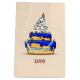 När du vet en söt pojke som snart kommer att vända sig fyra, skulle det säkert göra hans födelsedag mer söt när du skickar honom denna söta gåva, souvenir, gåva eller party. Framsidan har en söt kaka med blå isbildning som hälsar honom lycklig 4e födelsedagen.