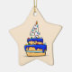 Boy 4e födelsedagen, 4 på sötblåkummel julgransprydnad keramik
