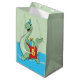 Förvåna en pojke som kärlek dinosaurier på sin femte födelsedag med en leende dinosaurier med en födelsedagspresent på ryggen. Den här stora killen är nog på väg att leverera presenten.