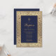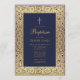 Boy Baptism Blommigt Guld Ram marin Blue Elegant Inbjudningar