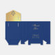 The rest is royal blue, with golden text on the front: in the lower part, the name in an elegant calligraphy, the occasion and the date. In the upper part, under the flap, there is the message "Thank You" in the same golden script.