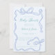 Minneshögtidlighålla mamma med den här lekande Funkyn Blue Bow Hand-dragen Baby Shower-inbjudan! Den här inbjudan innehåller en vit bukblå illustration och ett snabbt, handritat inslag, och anger tonen för en babydusch för roligt och snyggt. Utformningen är djärv men charmig, perfekt för ett modernt firande med personlighet. Fullständigt anpassade med din händelseinformation och tillgänglig som utskrift eller digital hämtning.