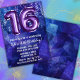 Pojkblått 16:e födelsedagen bjuder in pojkar 16 födelsedagsfest inbjudan till en pojkblå lila med moderna skrivmanschetter och roligt-folie-ballonger.