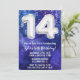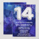 Pojkblått 14:e födelsedagen bjuder in pojkar 14 födelsedagsfest inbjudan till en pojkblå lila med moderna skript- och roligt-fotballonger.