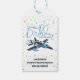Boy First Birthday Jet Fighter Airplan Blue White Presentetikett