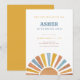 Första resa runt sol ☀️ Planera en pojkes första resa kring sol första födelsedagsfesten? Samla ihop familj och vänner med anpassadet retro blue sunshine födelsedagsfest inbjudan. Redigera enkelt din redigerbara pojke sol första födelsedag inbjudan med all födelsedagsfest om solskenstemat för födelsedagspojkens första födelsedag. Detta redigerbara första resa runt födelsedagsfest inbjudan i sol anger tonen för ditt första födelsedagsfirande för temat sol. CYRUS Collection har en vit bakgrund med en vattenfärgad boho sol med strålar i en färg-palett med blått, guld och terracotta. En parning av sans serif typsnitt i guld, blue och terracotta med all redigerbar text slutför den här pojkens inbjudan till första födelsedag.