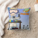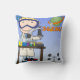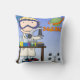 Boy in Science Lab-kudde, har en pojkforskare i ett labblabbs jackar och säkerhetsglasögon i labbet som arbetar med bakers, ett mikroskop och teströr.