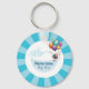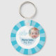 Snygg, blå och vit babyduschnyckelkedja med en ballong, en söt keepy för välkomnandet av pojke.