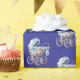 Boho blue baby carriage wrapping paper. Ideal for baby showers! A deep blue background allows the light blue pram to pop.