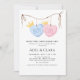 Featuring a neutral baby theme with hanging baby clothes, this design is perfect for gender reveal parties, baby showers, or family gatherings.