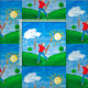 Boy Painting Himlar sol moln träd Pappor Mors dag