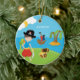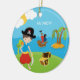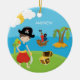 Hej, ho! Segla de sju haven med den roligt anpassningsbar pirat Julgran-prydnadsföremål för små barn. Helgdag har en ung pojke pirat, en grönt papegoja, en frakt i pirat, en tropisk ö och en skattkista fullt i guld mynt. Lägg ditt barns namn på framsidan och året på baksidan för att få en personlig.