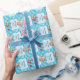 Snygg blå och vit babydusch Papper med en ballong, en söt keepy för välkomnandet av pojke.