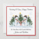 Julkortet är lämpligt för två pojkar vid deras första, andra eller tredje jul. Utformningen omfattar en röd gräns-kontur, ljusblå snöflingor, vattenfärgsfärgad Julgranar, polkagrisar, presenter och tvillingsnögubbar.