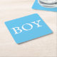 Boy Typography Blue Pojke Baby Shower Underlägg Papper Kvadrat