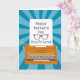 En skrivmaskin för vintage av orange med blå solnedbrytande bakgrund. En biet papper från skrivmaskinen som har ord Lycklig Boyvän med skrivmaskin och ett silhuettglas. Ett underbart fars dag-kort för din {spec}takulära Boykompis! © Ness Nordberg