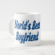 Mugg med World's Best pojkvän i 3D Havsblå text. Anpassa den med ditt eget foto. Mugg finns i flera stilar och färg.