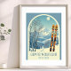 Poster from a wonderful ski resort holiday in the beautiful mountains of Boyne Mountain, Michigan. This small poster features an arch with a stunning blue-grey mountain landscape and retro ski boards in an orange tribal pattern in the foreground. The design is a lovely combination of retro and modern, and I hope you enjoy it!