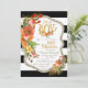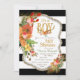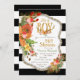 Hjort Antler-babyduschinbjudan med vattenblommor och guld glitter och folie accent delarare på svart och vit bakgrund.