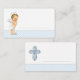 Baptism placerar kort med ängel pojke på en blå punktbakgrund på ena sidan och baby blue kor på den andra med en linje för ditt handskrivna namn när de kommer. Bara ställe kortet vid bord ställe.