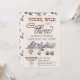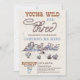 Boys Blue Western Young Vild Tre 3:e födelsedagarinbjudan Pojks blå och bruna 3-årsjubileum med ett westernt ökenlandskap med accti, rep stil och några ljusblå stjärnor. Den här unga inbjudan med vild och tre födelsedag är perfekt för pojkar som westernt temat tredje födelsedagsfesten.